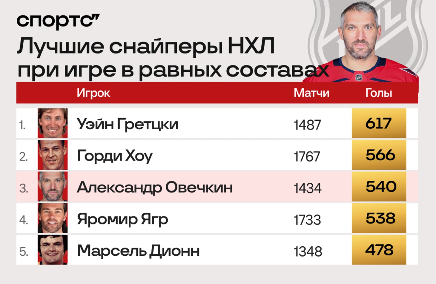 Разумеется, без переписывания истории не обошлось – этим дублем Овечкин обошел Яромира Ягра и вышел на чистое третье место по голам в равных составах. Догнать Гретцки тут все же будет сложновато.