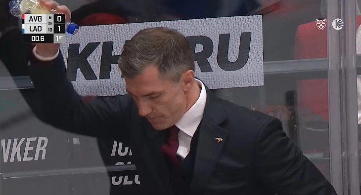 Вот реакция главного тренера «Авангарда» Сергея Звягина – он в ярости бросил под ноги бутылку.