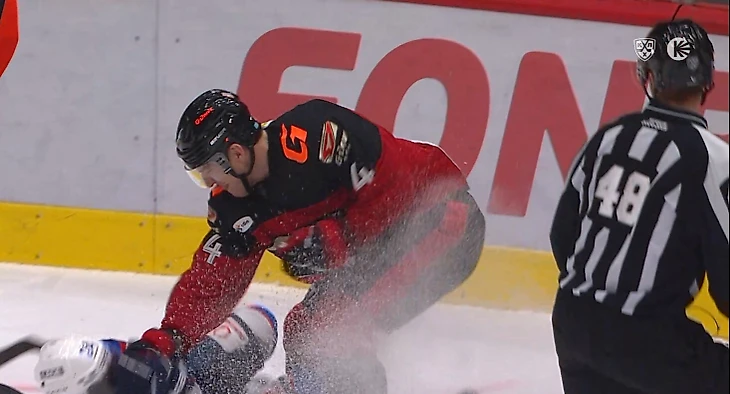 Дитц не сразу остановился, даже когда Бикмуллин уже падал на лед после его удара.