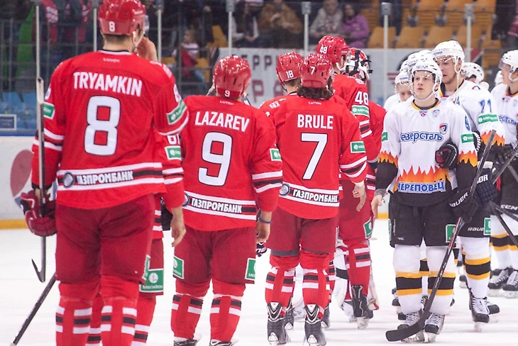 Открывает список форм, конструктивная критика которых крайне сложна, череповецкий клуб. Плюсую за оригинальную для лиги черно-желтую гамму, переливающуюся при помощи графического градиента, отсылающего к металлической крошке. В этом дизайне чувствуется индустриальный дух, не в последнюю очередь благодаря шрифтовому начертанию номеров. Желтая форма в качестве выездной тоже идет в зачет. Но наличие белого кажется лишним. Впрочем, чтоб его убрать, необходимо заменить белые шлема на желтые, но это означает, что пришлось бы раскошелиться на заказ нового элемента экипировки, да и вообще платить за имидж.