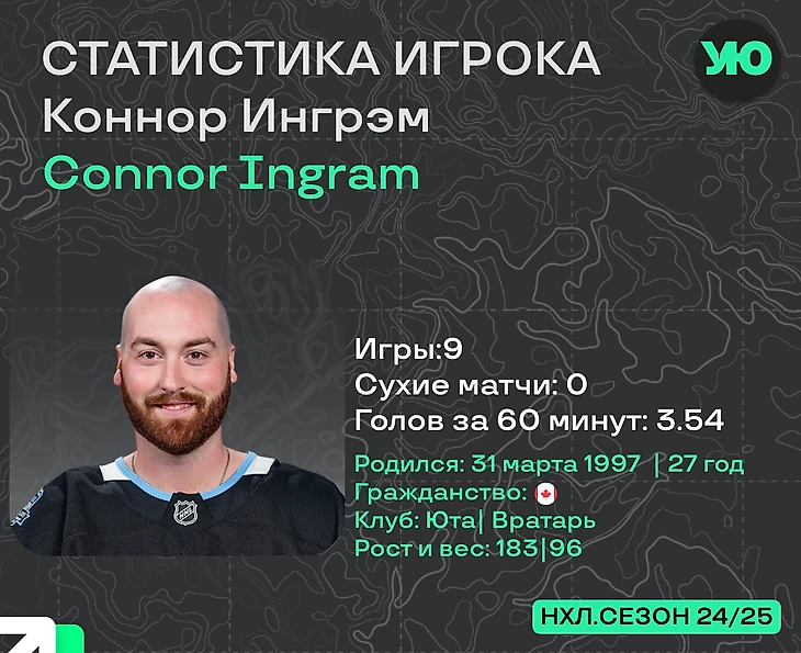 Коннор Ингрэм, вратарь команды «Аризона Койотс» а ныне «Юта», в минувшем сезоне разделил первое место в лиге по количеству матчей без пропущенных шайб, сыграв в шести из них. Он был лучшим голкипером команды во второй половине последнего сезона «Койотс» в Национальной хоккейной лиге (НХЛ). Коннор провёл 23 матча, в которых пропустил 21 шайбу и совершил 30 сейвов. Его средний показатель пропущенных шайб составил 2,91, а процент отражённых бросков — 0,907.