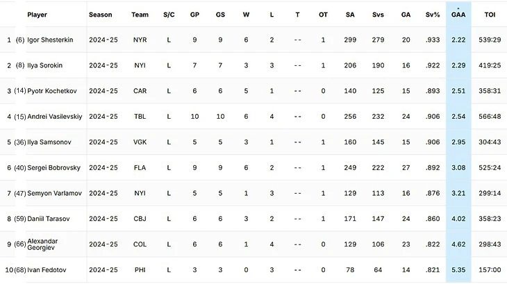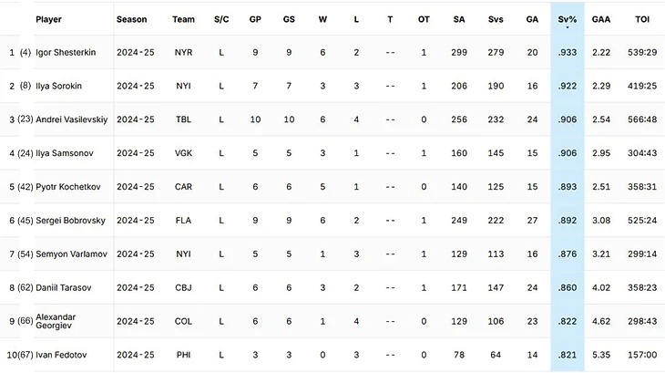 3 (1). Игорь Шестёркин «Нью-Йорк Рейнджерс», 3 матча (2 победы), 116 сейвов, 94.4 % отраженных бросков, 2.36 коэффициент надежности.