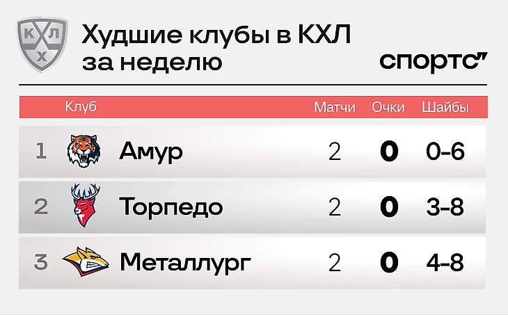 Худшие клубы: «Амур» продолжает безголевую серию, «Торпедо» и «Металлург» проиграли все матчи