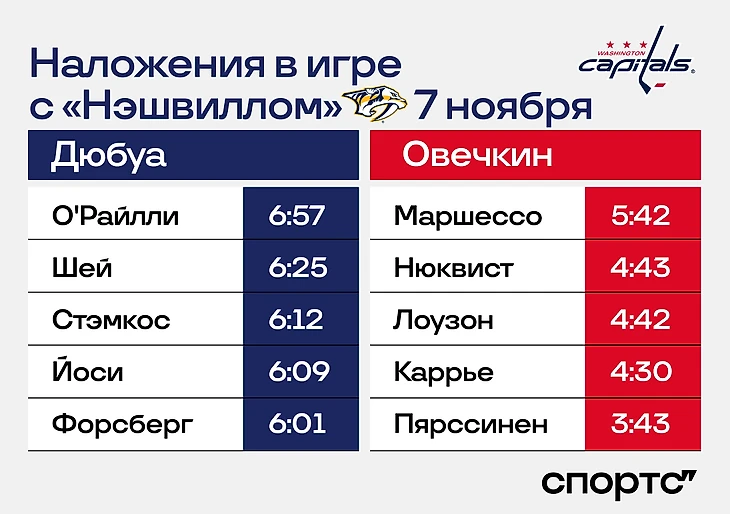 Такие слова вызовут небольшой шок у читателей формата Дмитрия Губерниева или нового министра спорта, но те, кто хоть как-то смотрит хоккей, все знают. Вот против кого чаще всего выпускали Дюбуа и Овечкина в домашнем матче против «Нэшвилла».