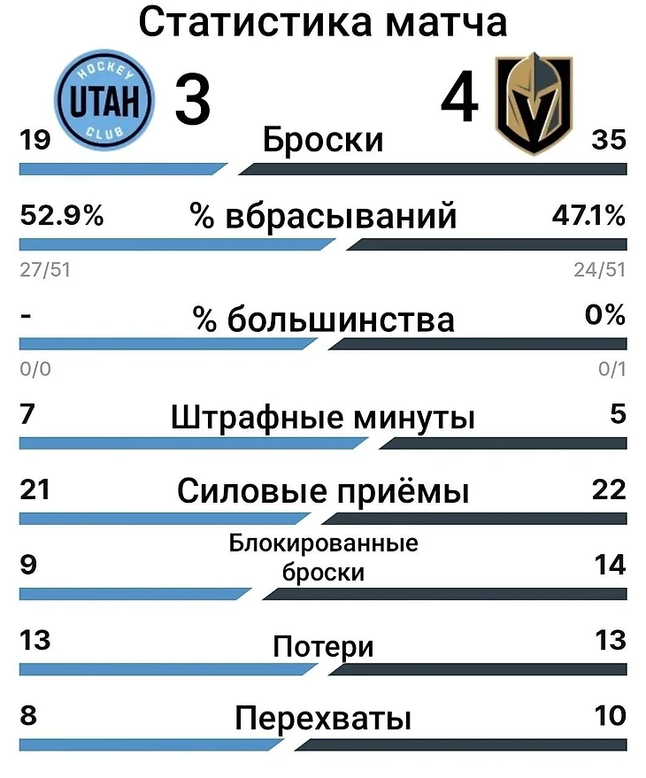 Бретт Хауден №21 (12 игр, 6+1) вырвал победу в игре 3х3 и "Вегас" остается не побежденный на домашней арене в течение уже восьми матчей. Центральный нападающий забросил на третей минуте овертайма. Логан Кули №92 (13 игр, 2+8) отличился двумя результативными очками в матче (1+1) и на данный момент имеет показатель полезности +1»