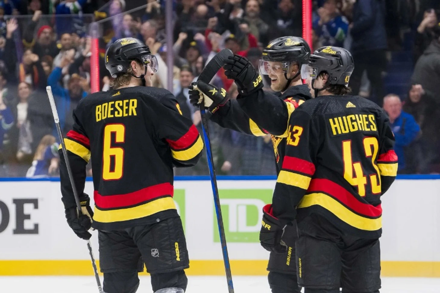 В завершавшей калифорнийское турне встрече с «Лос-Анджелесом» «Кэнакс» снова пропустили первыми, но не раскисли и выдали отличный матч. Особенно хорош был снова Хьюз, но и вся остальная команда выглядела качественно. Ложкой дегтя стала травма Брока Босера – его в первом периоде хитанул на открытом льду в голову Таннер Жанно, после чего снайпер уже не вернулся на лед.