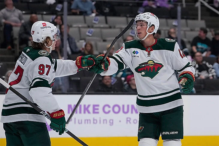 Кирилл Капризов набрал 3 (2+1) очка в матче с «Анахаймом» и стал единоличным лидером бомбардирской гонки НХЛ. Теперь у нападающего «Миннесоты» 27 (9+18) баллов – на два больше, чем у Нэтана Маккиннона из «Колорадо».