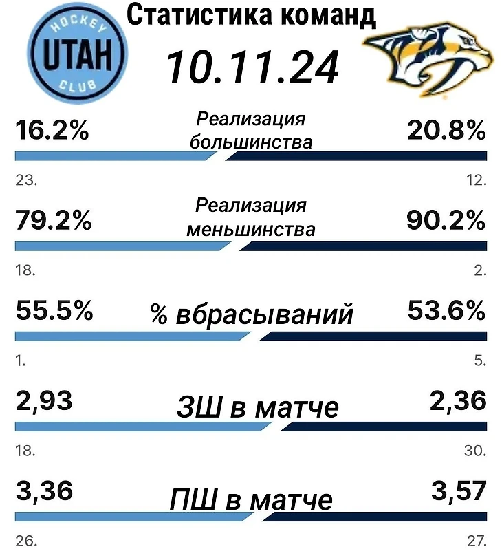 Юта вернула себе звание «Лучшей команды по вбрасываниям», команда в среднем забрасывает почти по 3 шайбы при это пропуская больше 3 за матч.