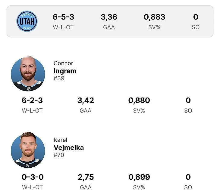 Карел Веймелка №70 (4 игры, 89.9% отраженных бросков) свою предыдущую встречу в качестве основного голкипера матча проиграл (Виннипег - Юта 3:0).