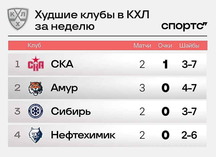 Худшие команды недели – СКА в компании «Сибири» и «Амура»