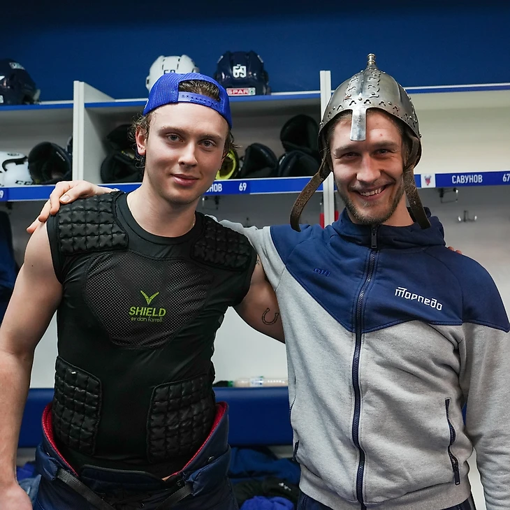 В победной раздевалке лучшим игроком матча признали Ларионова II. Но Игорь шлем отдал тренеру «Торпедо» по ОФП Алексею Базанову, который занимался восстановлением игрока.