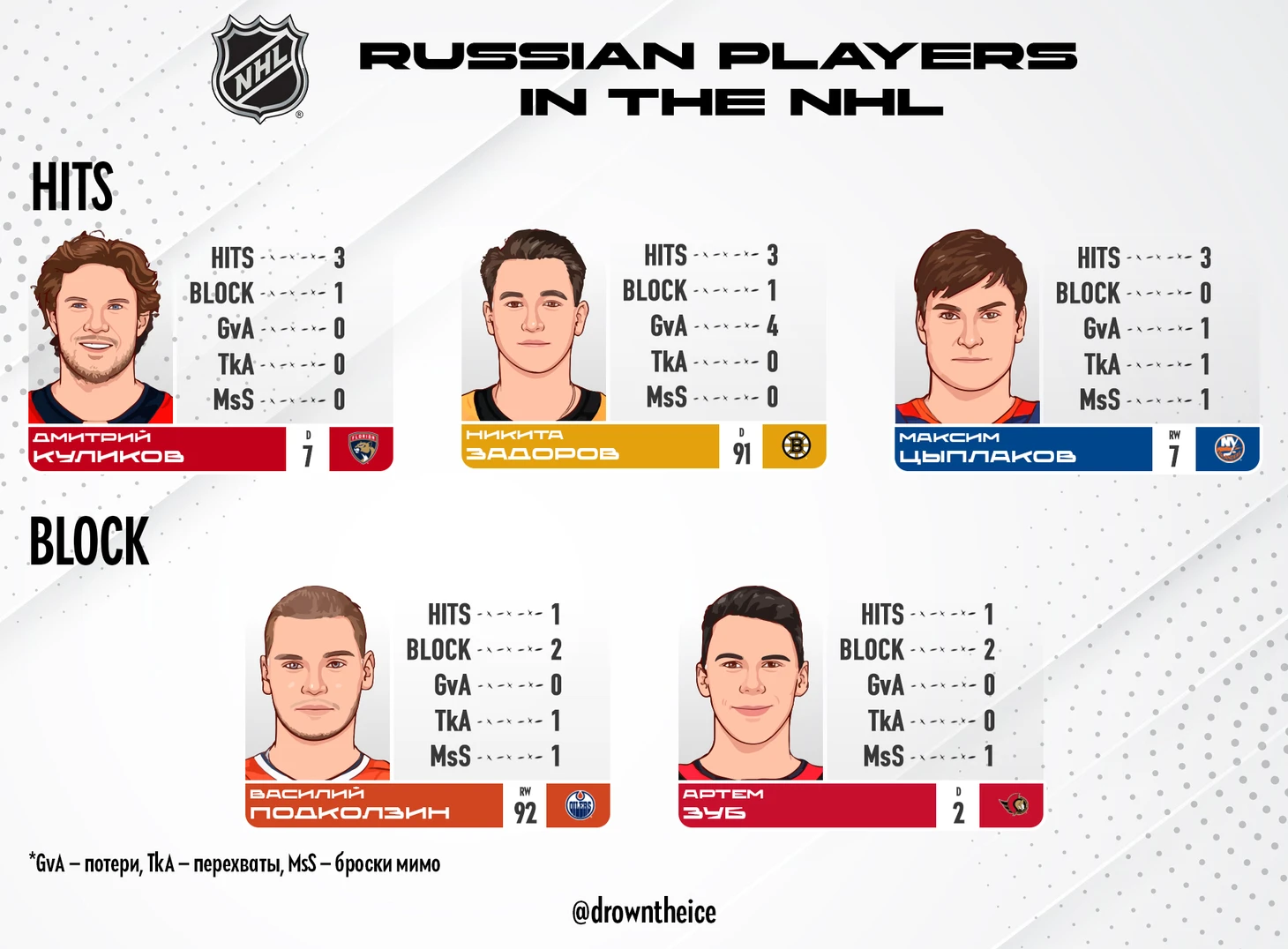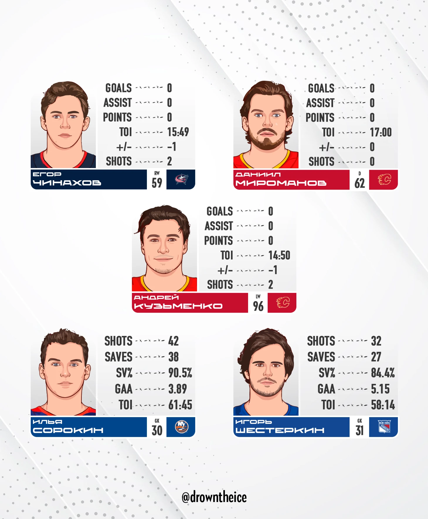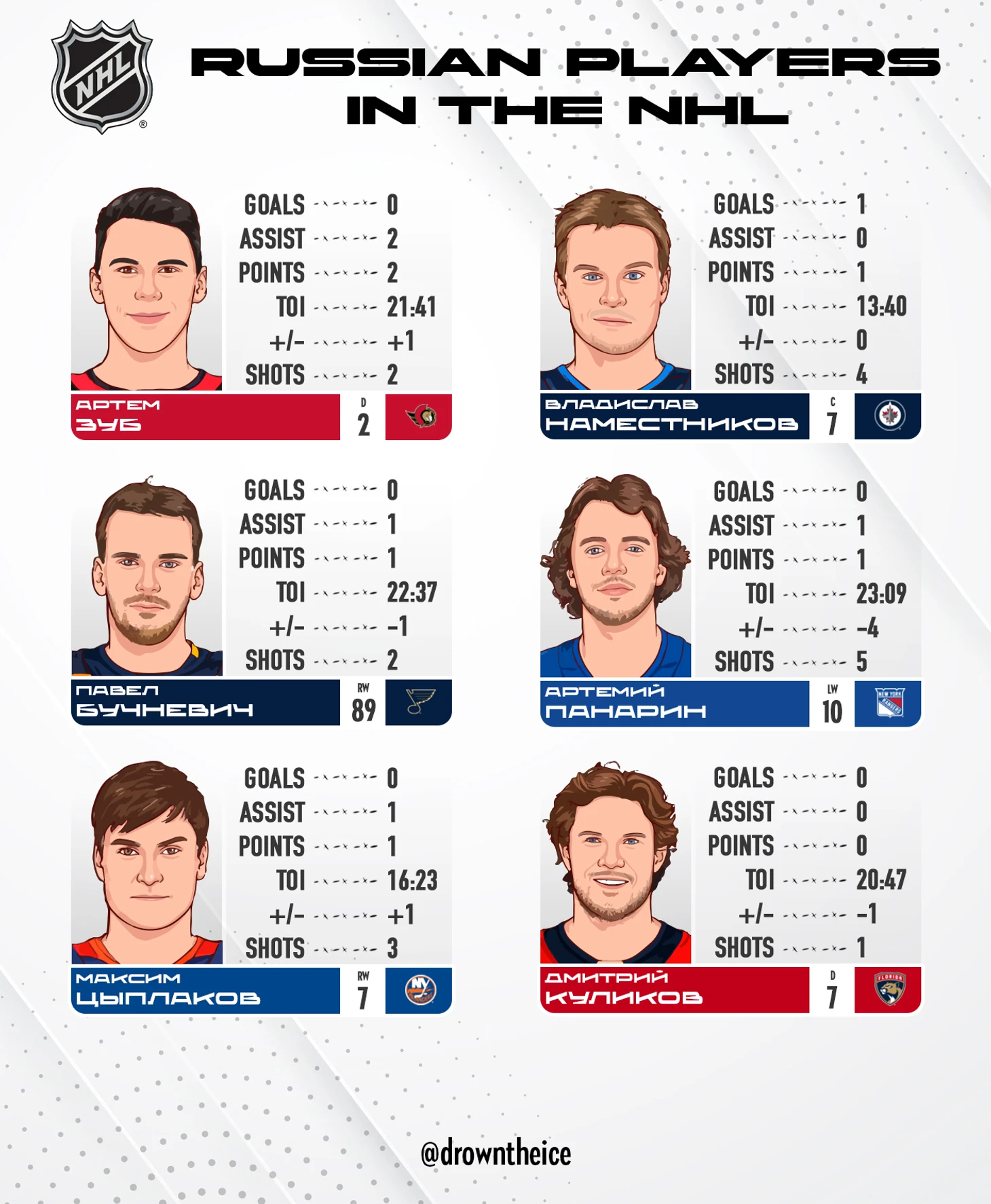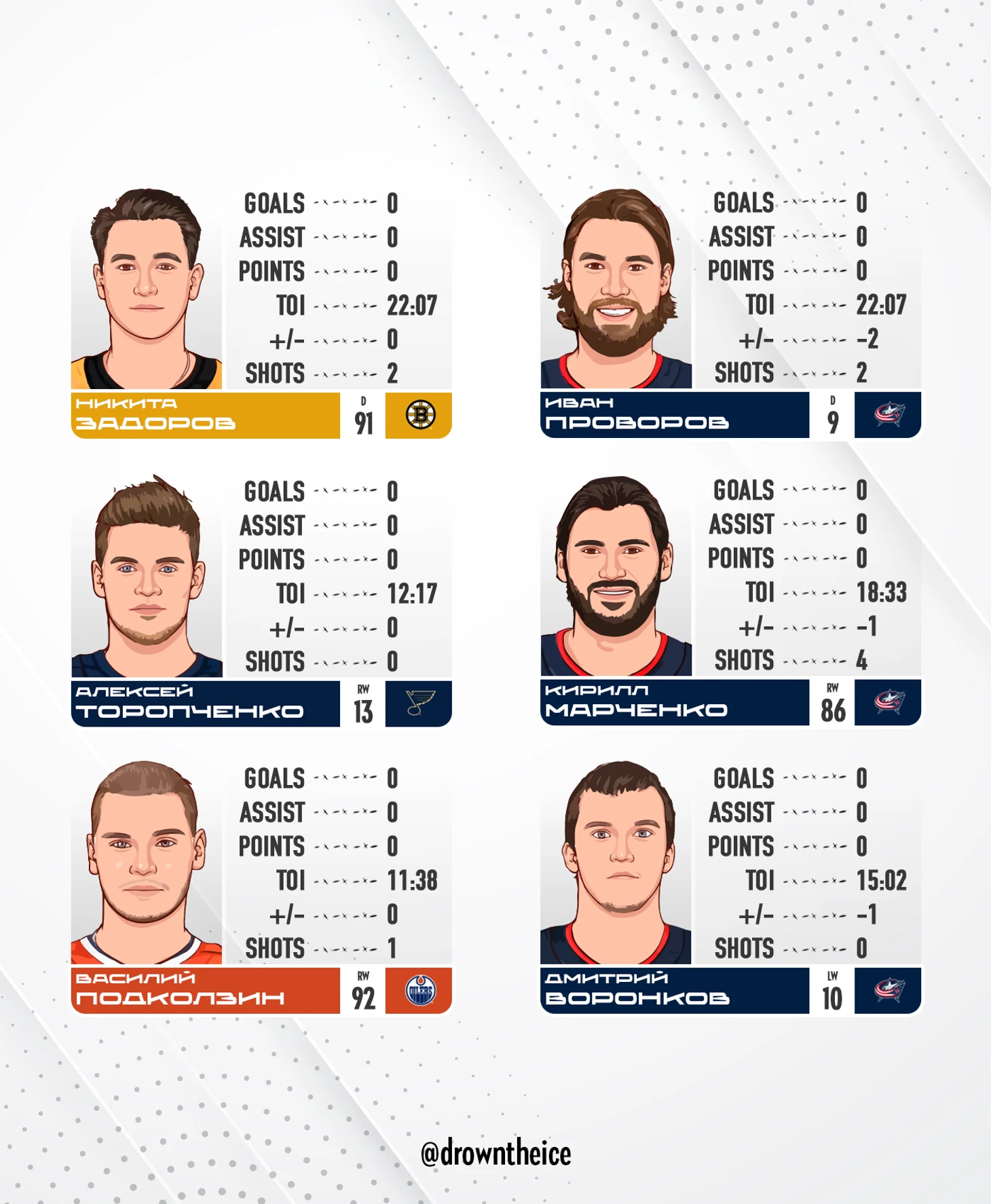 НХЛ: статистика российских игроков в картинках от 13.11.24