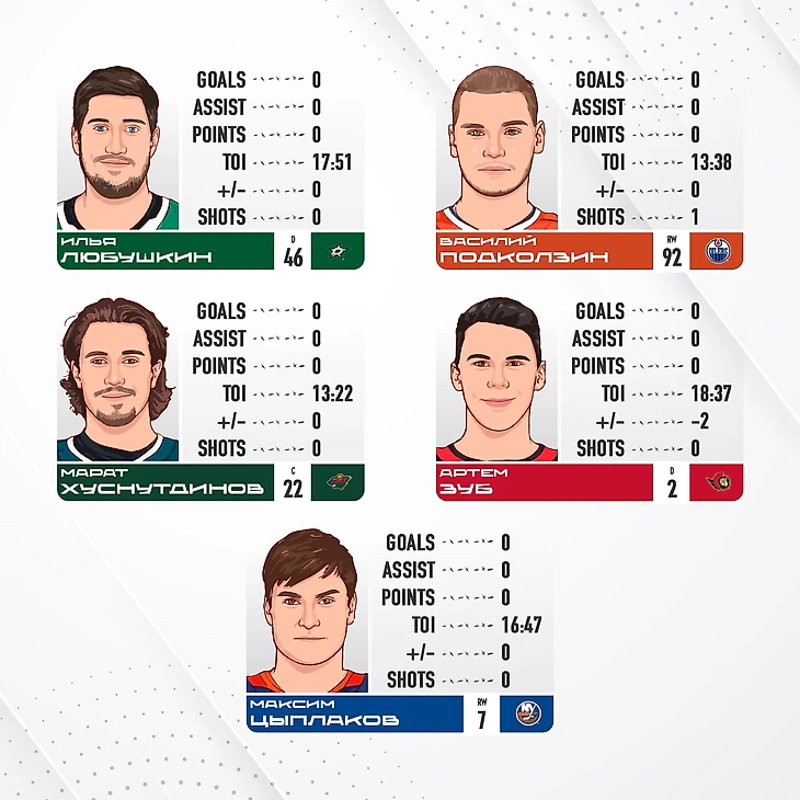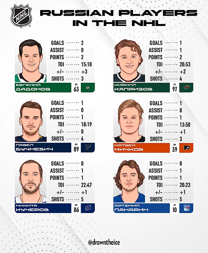 НХЛ: статистика российских игроков в картинках от 15.11.24