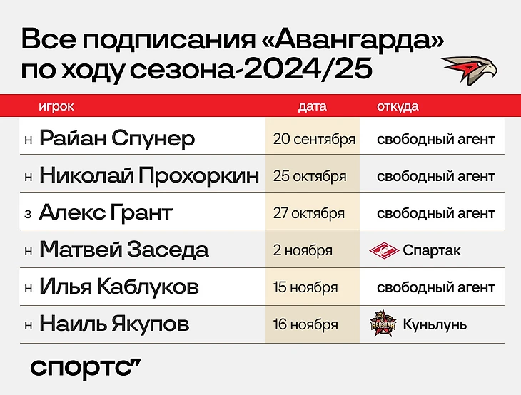 Якупов стал шестым игроком «Авангарда», подписанным после старта сезона-2024/25. Отдельные слухи связаны с переходом нападающего Майкла Маклауда, которого недавно расторгли в «Барысе». Официально контракт с ним пока не подписан, но смущающих факторов много и в потенциальной сделке с Маклаудом. Суд весной 2025-го для него никто не отменял.