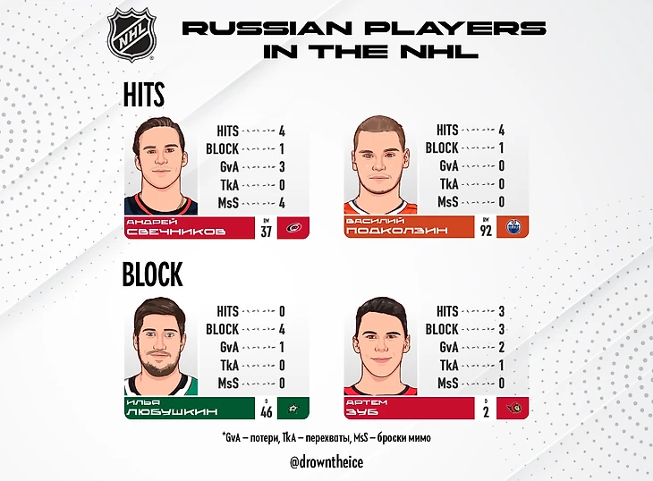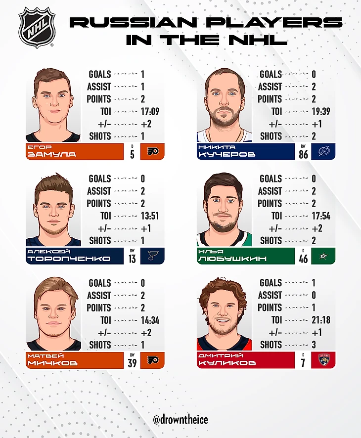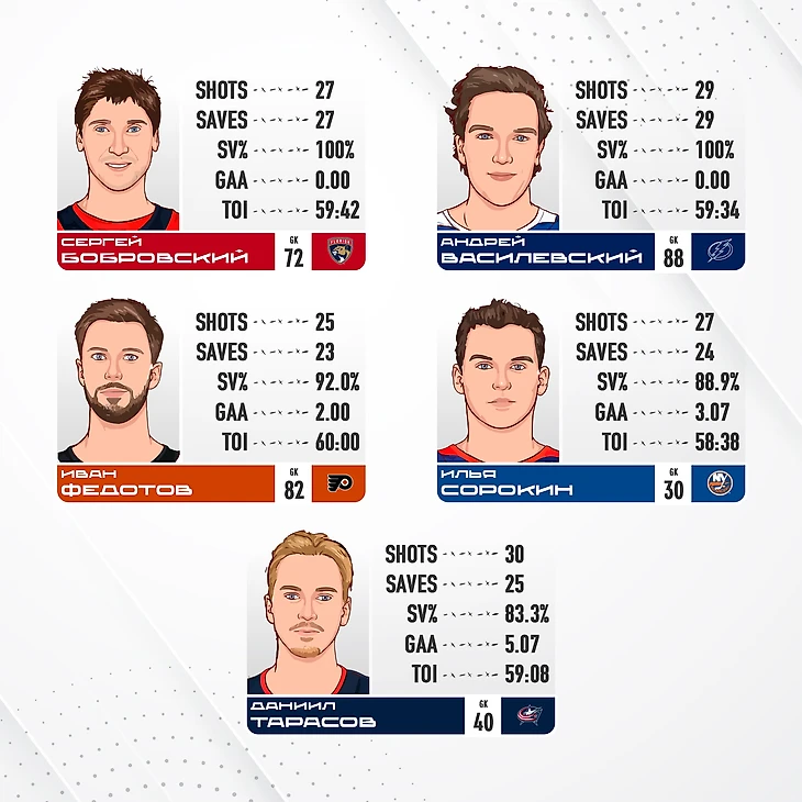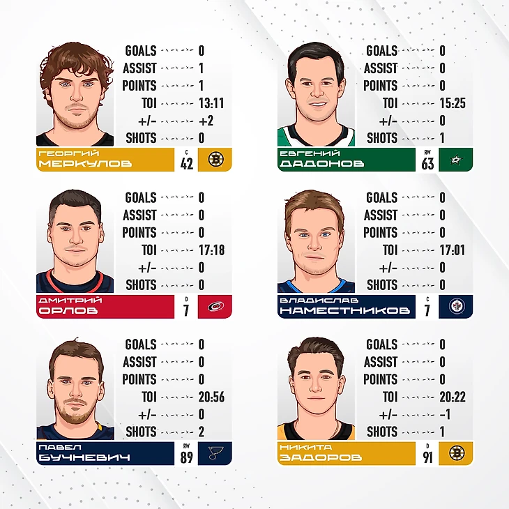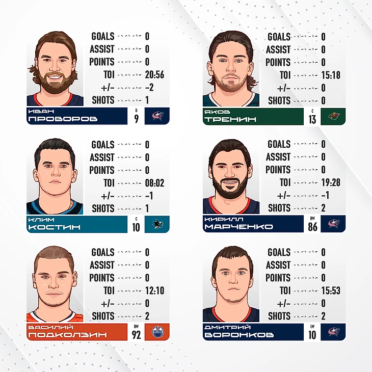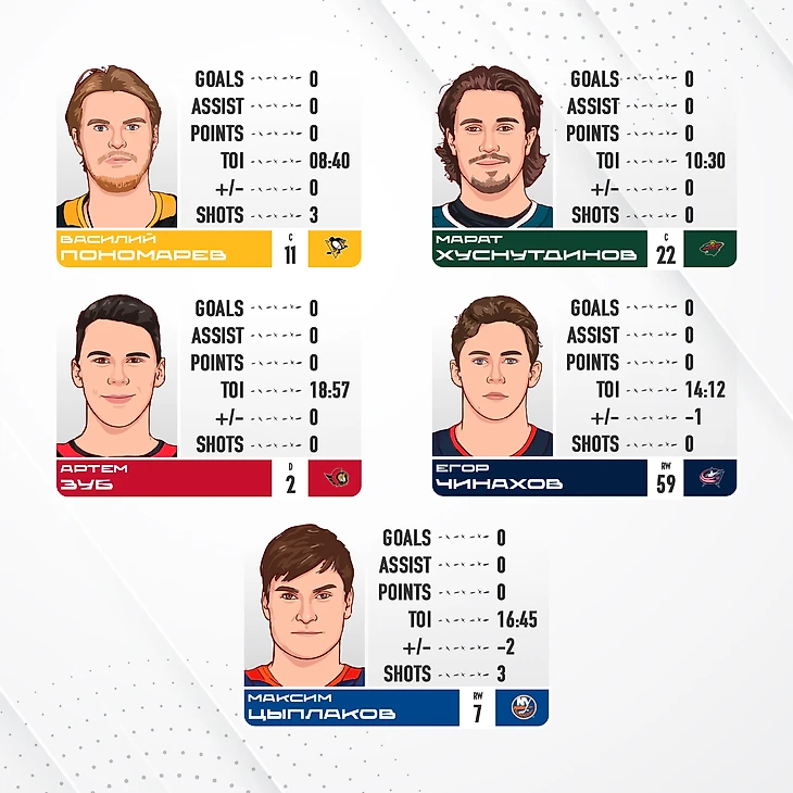 НХЛ: статистика российских игроков в картинках от 17.11.24