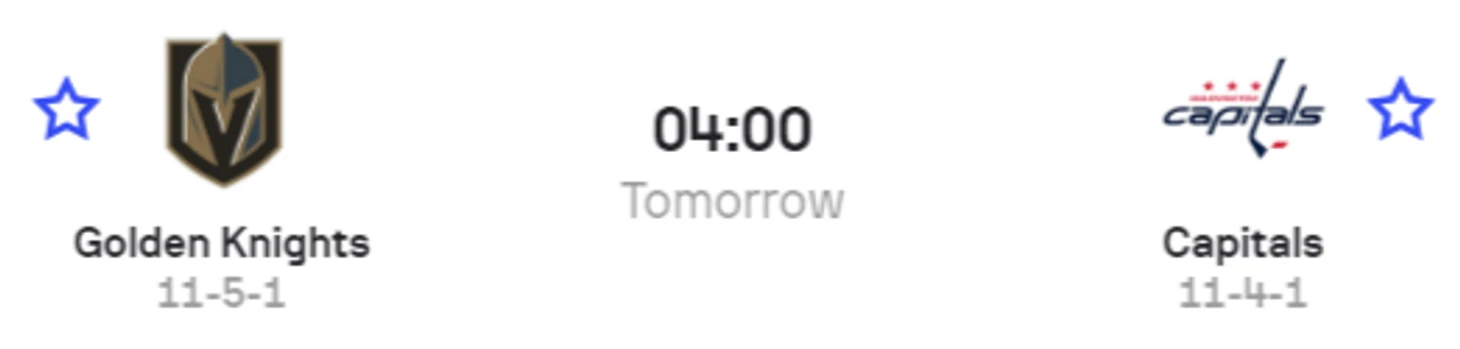 Главный матч игрового дня состоится в Лас-Вегасе, где местная команда «Голден Найтс» примет столичную команду «Вашингтон Кэпиталз». Обе команды ударно начали сезон и уверенно идут в лидерах своих конференций. Также оба коллектива набрали по 7 очков в последних 5 матчах. И гости, и хозяева подходят к матчу в хорошей форме, так что ждем отличный хоккей в «Городе грехов»!