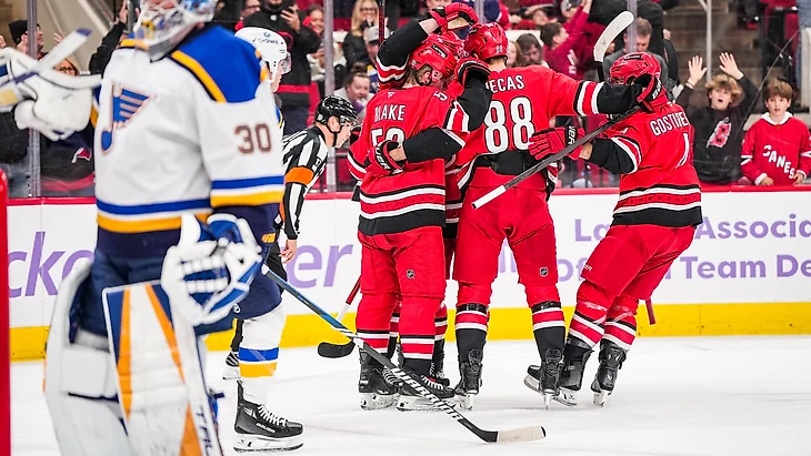 «Каролина Харрикейнз»-»Сент-Луис Блюз» 4:1. Мартин Нечас набрал 4 очка (2+2), Эрик Робинсон набрал 3 очка (1+1), Андрей Свечников забросил одну шайбу, Дмитрий Орлов отдал результативную передачу, Пётр Кочетков отразил 29 бросков.