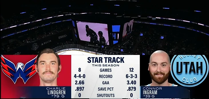В составе Вашингтон Чарли Линдгрен №79 (8 игр, 4 победы, 89.7% отраженных бросков). В составе Юта Коннор Инграм №39 (12 игр, 6 побед, 87.9% отраженных бросков). К моему великому сожалению, стартовый голкипер Юты оставляет желать лучшего судя по матчам которые он проводил, и было бы предпочтительнее если в игре против Ови и Ко поставить Веймелку, но об этом чуть позже.