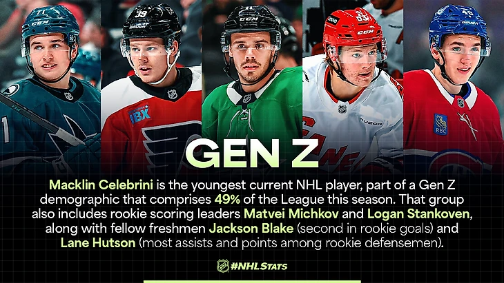 Сезон 2024-25 ознаменовался дебютом 8 600-го игрока в истории НХЛ. На данный момент общее число игроков в Лиге составляет 8 609 человек. Этот сезон может стать последним, в котором миллениалы (51%) численно превосходят представителей поколения Z (49%).