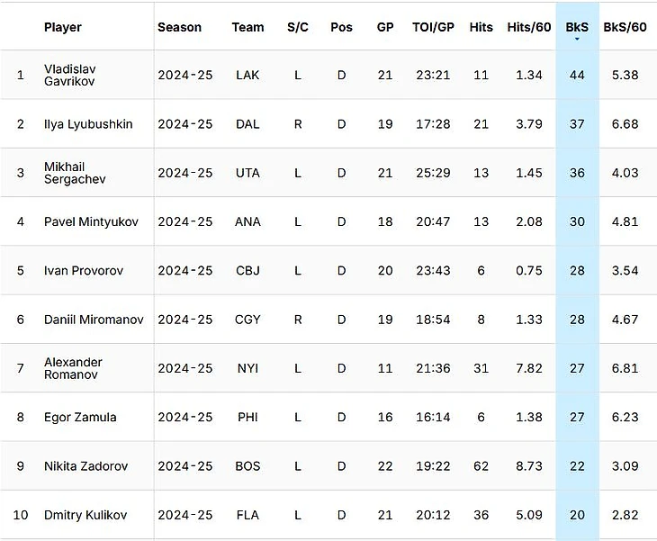 Лидеры по заблокированным броскам (на 25.11.2024)