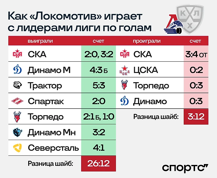 Никитин оказался прав: сейчас у «Локомотива» три поражения за последние пять матчей. С сухим счетом проиграли ЦСКА (0:2), «Торпедо» (0:3) и «Динамо» (0:3). Интересно, что по броскам в этих матчах «Локомотив» всегда с отрывом лидировал – в среднем делал 33 за матч против 18 от соперника. Явно подводила реализация, но проседало и качество создаваемых моментов.