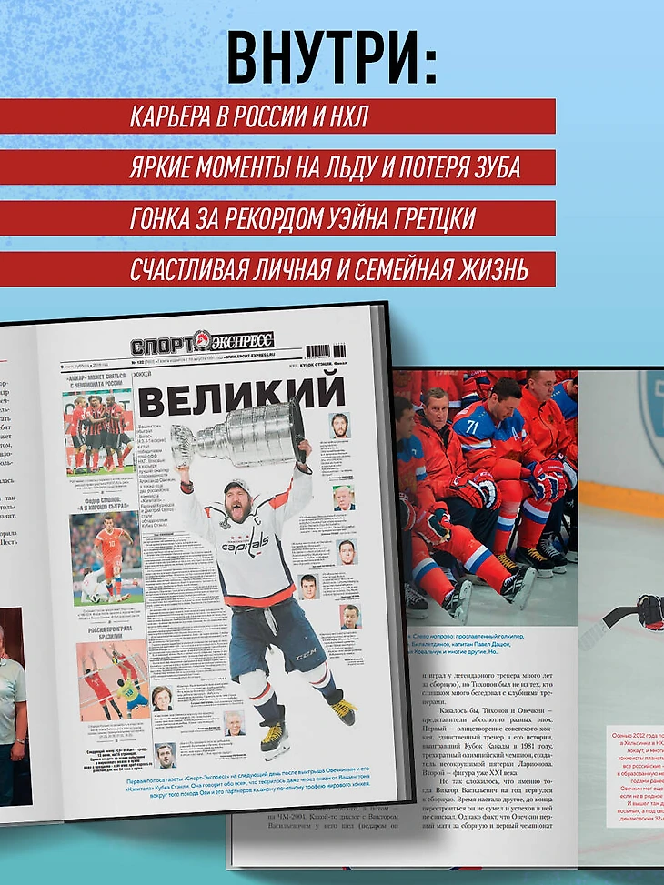 Примечательно издание «Александр Овечкин. Иллюстрированная биография» не только тем, что там много информации из первых уст, в том числе от самого главного героя, но и большим количеством фотографий. Для книги Александр разрешил использовать в том числе свой личный архив, так что там много семейных фото, снимков с разных встреч, с тренировок и игр, с семейных праздников и важных мероприятий. На страницах можно увидеть и современного Овечкина, и совсем еще молодого парня, воспитанника московского «Динамо».
