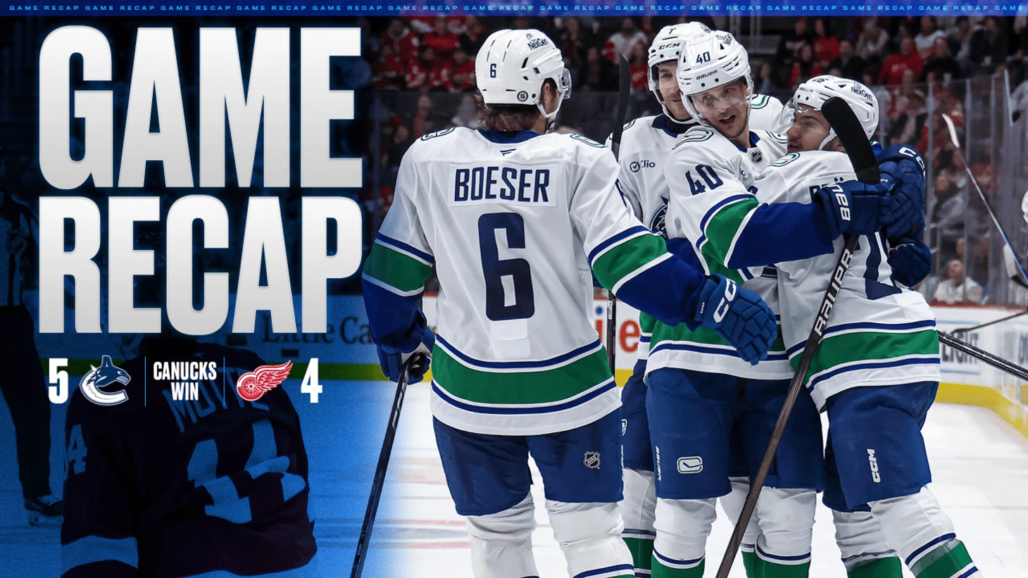 «Детройт Ред Уингз»-»Ванкувер Кэнакс» 4:5 (ОТ). Джейк ДеБрюск в овертайме принёс победу гостям. Джейк ДеБрюск набрал 4 очка (3+1), Элиас Петтерссон и Куинн Хьюз отдали по 3 результативные передачи, Кевин Ланкинен отразил 27 бросков. У хозяев Йонатан Берггрен набрал 2 очка (1+1), Лукас Рэймонд с Диланом Ларкиным и Марко Каспером отдали по 2 результативные передачи, Владимир Тарасенко забросил одну шайбу.