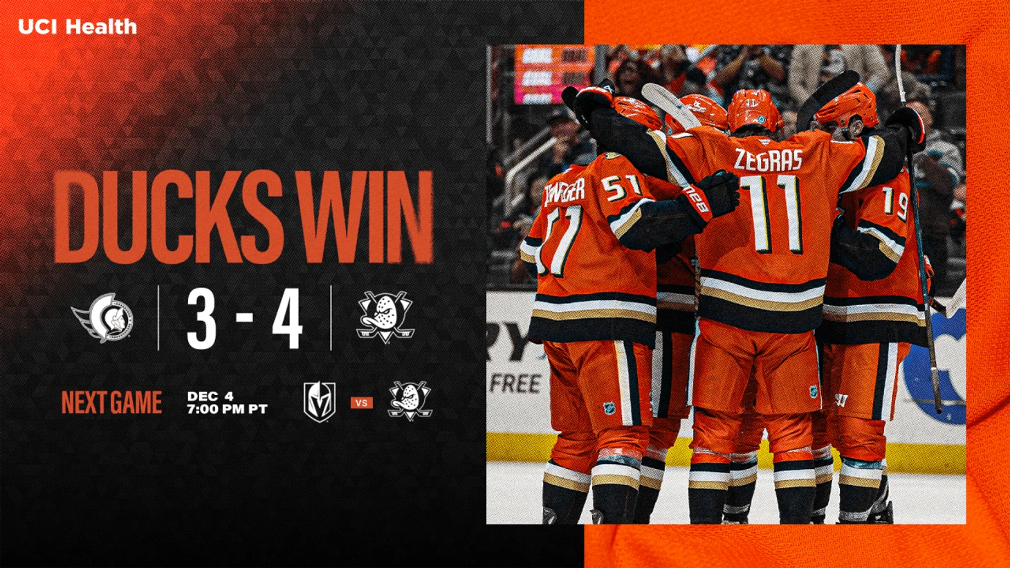 «Анахайм Дакс»-»Оттава Сенаторз» 4:3 (Бул). Тревор Зеграс в серии буллитов принёс победу хозяевам. Франк Ватрано набрал 3 очка (2+1), Трой Терри отдал 3 результативные передачи, Райан Стром отдал 2 результативные передачи, Лукаш Достал отразил 28 бросков. У гостей Брэди Ткачук забросил 2 шайбы.