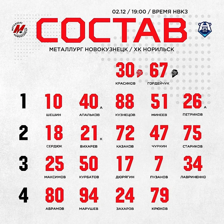 Стартовый состав «Металлурга» удивил, ведь все звенья, кроме второго, были перетасованы. Место в воротах доверили Алексею Красикову. Матвея Ботова, перед матчем, отправили в фойе: фотографироваться с болельщиками и раздавать автографы.
