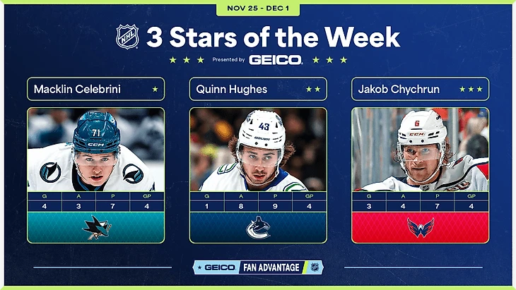 Кстати, Хьюза с его 1+8 в четырех последних встречах назвали второй звездой недели в лиге. У выигравшего награду Маклина Селебрини из «Сан-Хосе» 4+3 при таком же количестве матчей. В тройку не попал ДеБраск, оформивший 5+1. Жаль, что матч с «Оттавой» не вошел в выборку, потому что за пять последних игр у Джейка 7+2.