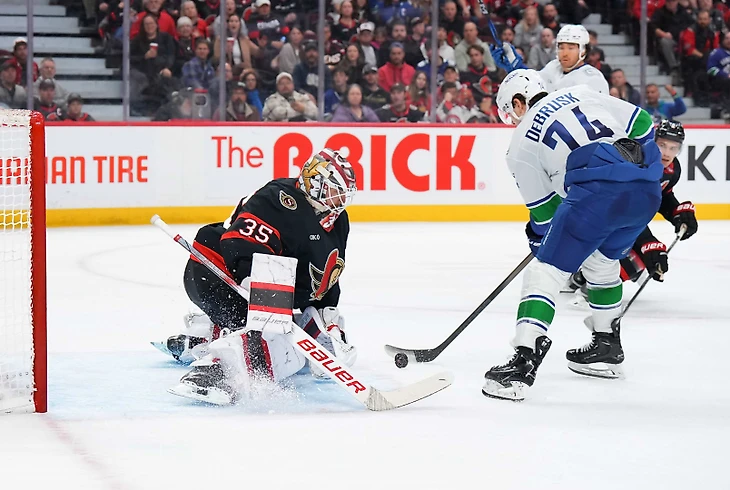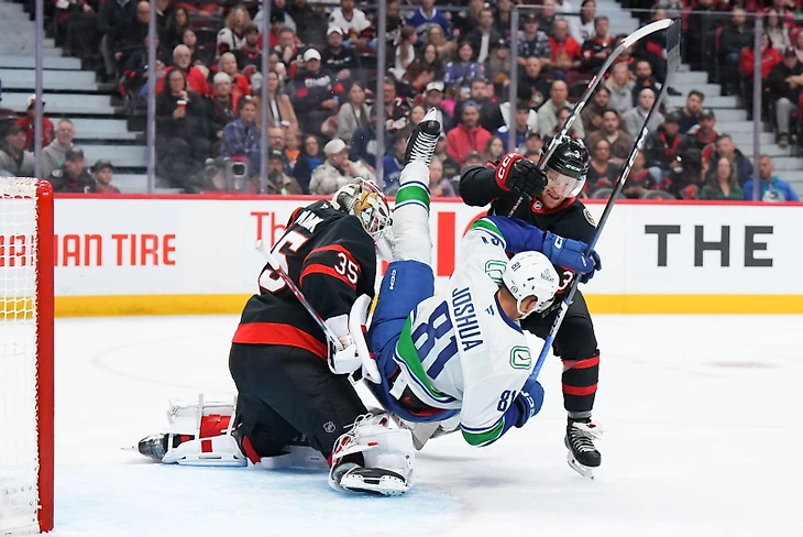 Выездное турне было шансом разжиться очками в таблице: вроде бы не самые сильные соперники. Хотя, может быть, учитывая состояние команды, таких лучше отложить на потом? Матч в Оттаве начался качественно, но еще при 0:0 Хьюз получил очень спорный матч-штраф. Кроссчек, безусловно, был, но таких много, а к суровому решению привело падение Джоша Норриса, кстати, бывшего колледжского тиммейта и соседа Куинна по комнате, лицом в борт. Однако «Кэнакс» выстояли пять минут в меньшинстве и открыли счет в своем большинстве. Брэди Ткачак восстановил равновесие во втором периоде, но дальше превратил матч в одну большую истерику, в то время как «Ванкувер» довел перевес до 4:1. И хотя в концовке при неоднозначной работе арбитров «Сенаторз» смогли сократить отставание до минимума, на большее у них уже не осталось времени.