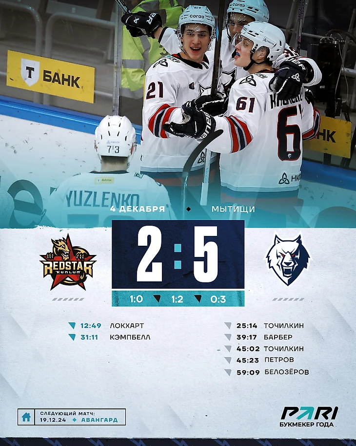 «Нефтехимик» остался на седьмом месте в Восточной конференции. Следующий матч «Нефтехимик» сыграет 19 декабря дома против «Авангарда». Встреча начнётся в 19:00.