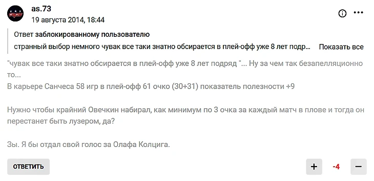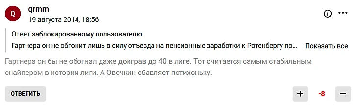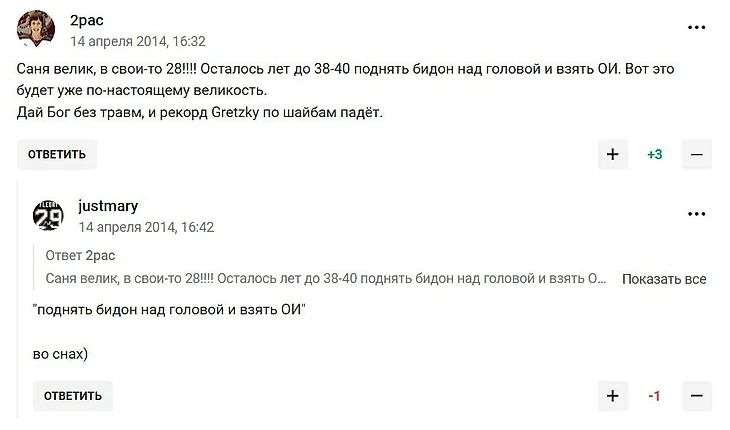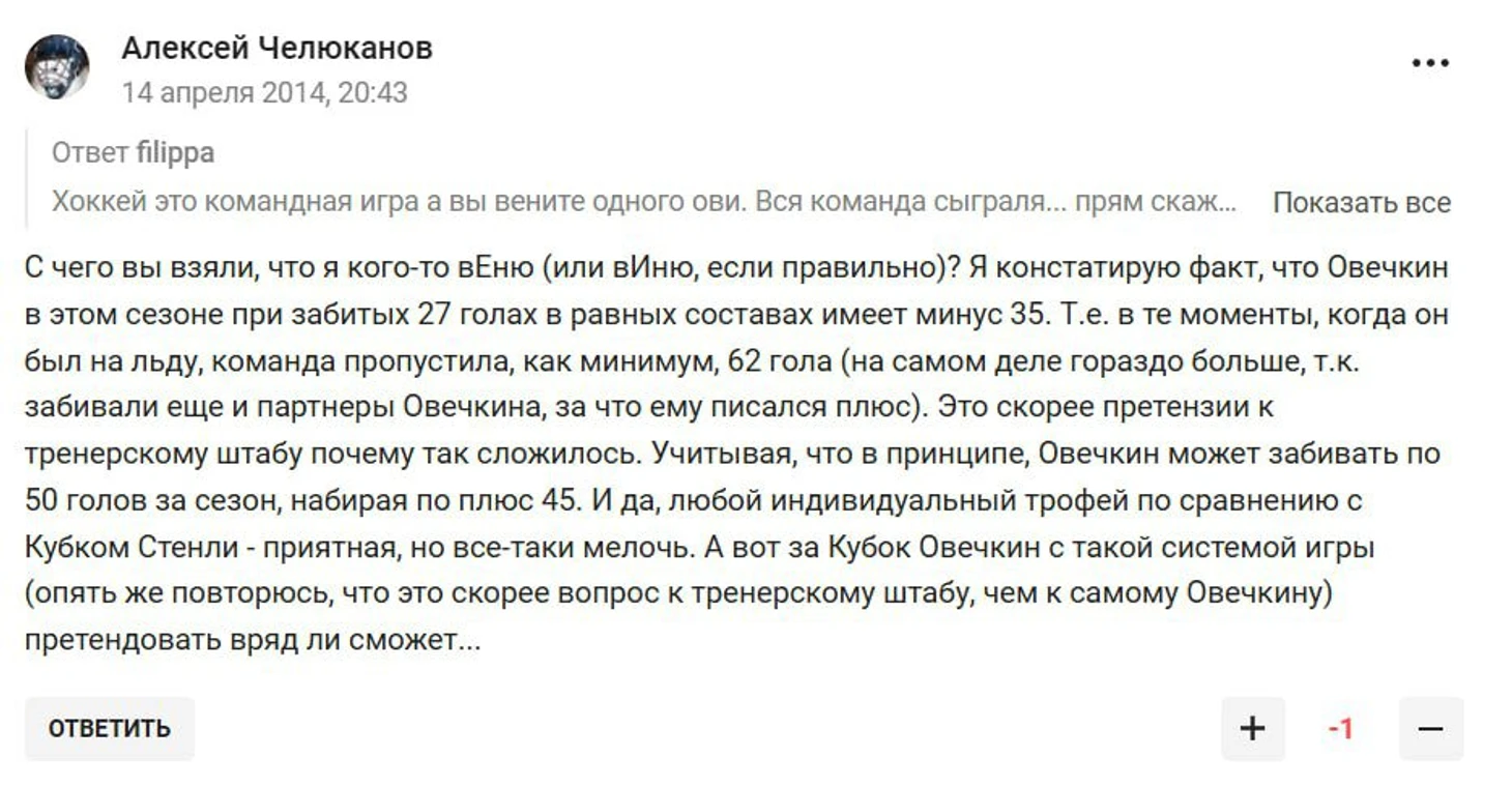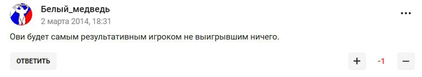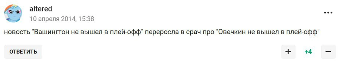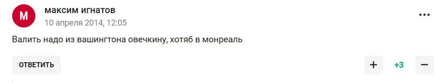А ведь в 2014 году NBC Sports признал Овечкина лучшим игроком в истории «Вашингтона». В комментариях под новостью об этом было тоже интересно: