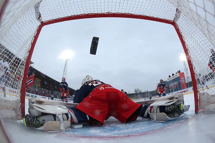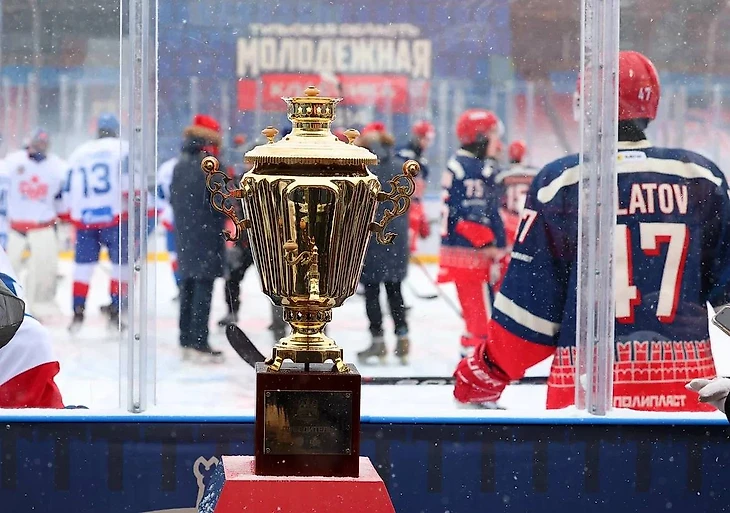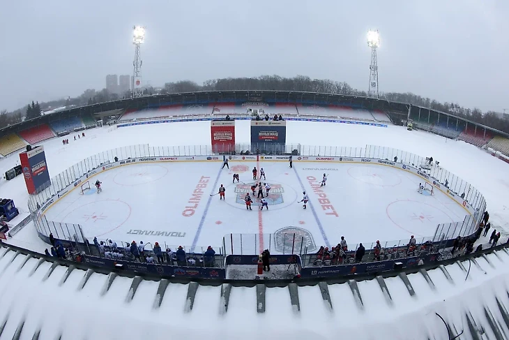 Первый матч МХЛ под открытым небом: футбольный стадион, пледы, драка и самовар