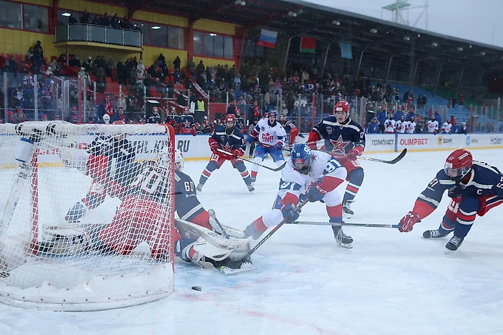 Первый период был пристрелочный: обе команды привыкали к уличным условиям прямо по ходу игры. На 22-й минуте «Академия» открыла счет благодаря точному кистевому Матвея Брынцева, а ближе к середине основного времени удвоила преимущество: Артем Крикуненко в падении отправил шайбу в дальний нижний угол.