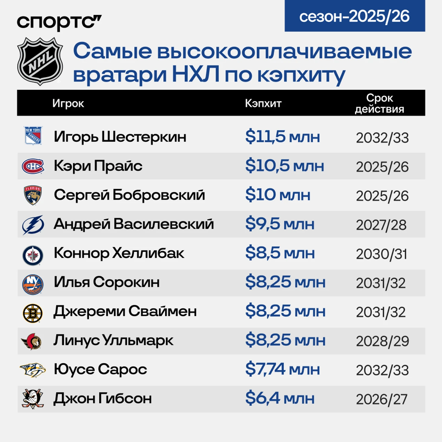 Шестеркин подписался на максимальный срок (8 лет) и рекордную для вратарей сумму ($92 млн). Ни один голкипер в истории НХЛ не получал так много!