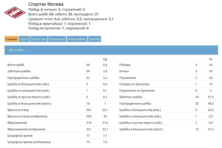 «Спартак» пропускает в третьем периоде 1,8 шайбы.