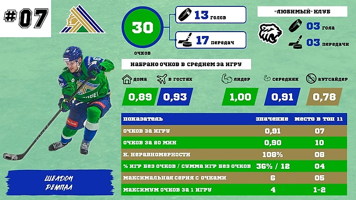 Шелдон Ремпал неплохо идет по сезону. Его отличает равномерность набора очков дома и в гостях, а также с разными категориями соперников (отличия есть, но минимальные). Это точно является плюсом, т.к. говорит о стабильности и высоком уровне мастерства.