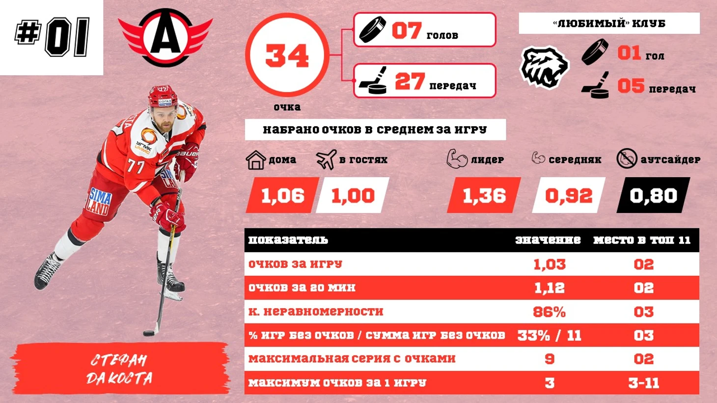 Текущий лидер – Стефан Да Коста. По всем показателям входит в тройку, почти одинаково набирает очки дома и на выезде, круто играет против лидеров. Немного «напрягает» только сильный перекос в сторону передач и то, что в тройку он ворвался совсем недавно (ударные последние 5 игр). В остальном, у него все прекрасно, так что должен попадать в тройку по итогам сезона. Но, сугубо по моему личному мнению, он останется на третьем месте, позади Гусева с Ливо.