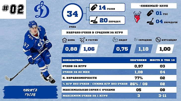 Никита Гусев также долго держался на первом месте, и сейчас он его, по сути, делит с Да Костой. В пользу динамовца говорит хорошая стабильность и уверенная игра с любыми типами соперников и в любом месте (и дома и на выезде). Он точно будет бороться за первое место с Джошем Ливо, и будет минимум вторым.