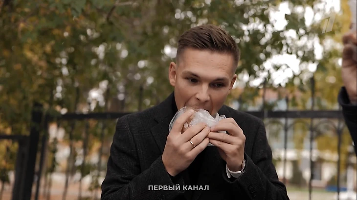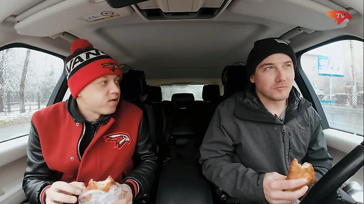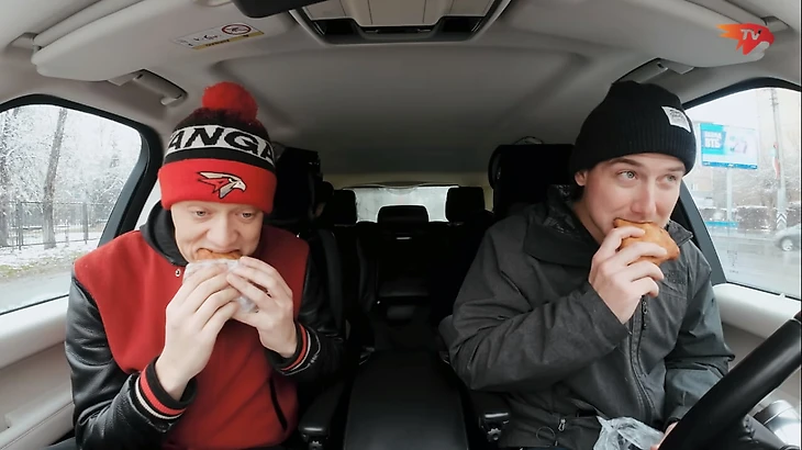 Ведущий и хоккеист вернулись в машину к Буше, там и отобедали.