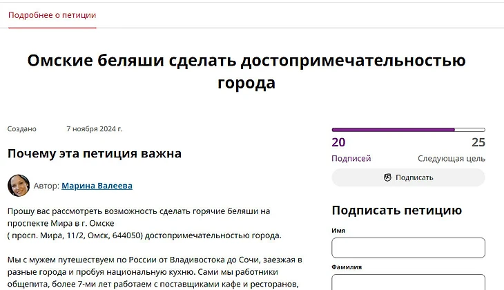 У Беляшной был собственный (но неофициальный) аккаунт в соцсетях, созданный поклонниками, а на сайте с петициями change.org есть вот такая страница – причем, довольно свежая и заведенная, судя по описанию, не омичами.