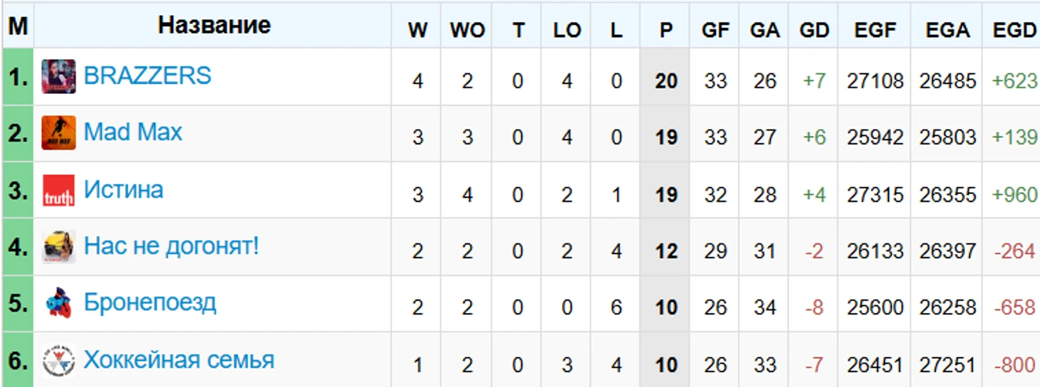 Лучший результат среди всех команд - 20 очков, набрала команда BRAZZERS, одержавшая 6 побед и не имеющая ни одного чистого поражения. Сразу три игрока идут в топ-50, а лидер команды usamapinsk занимает высокое 10 место.