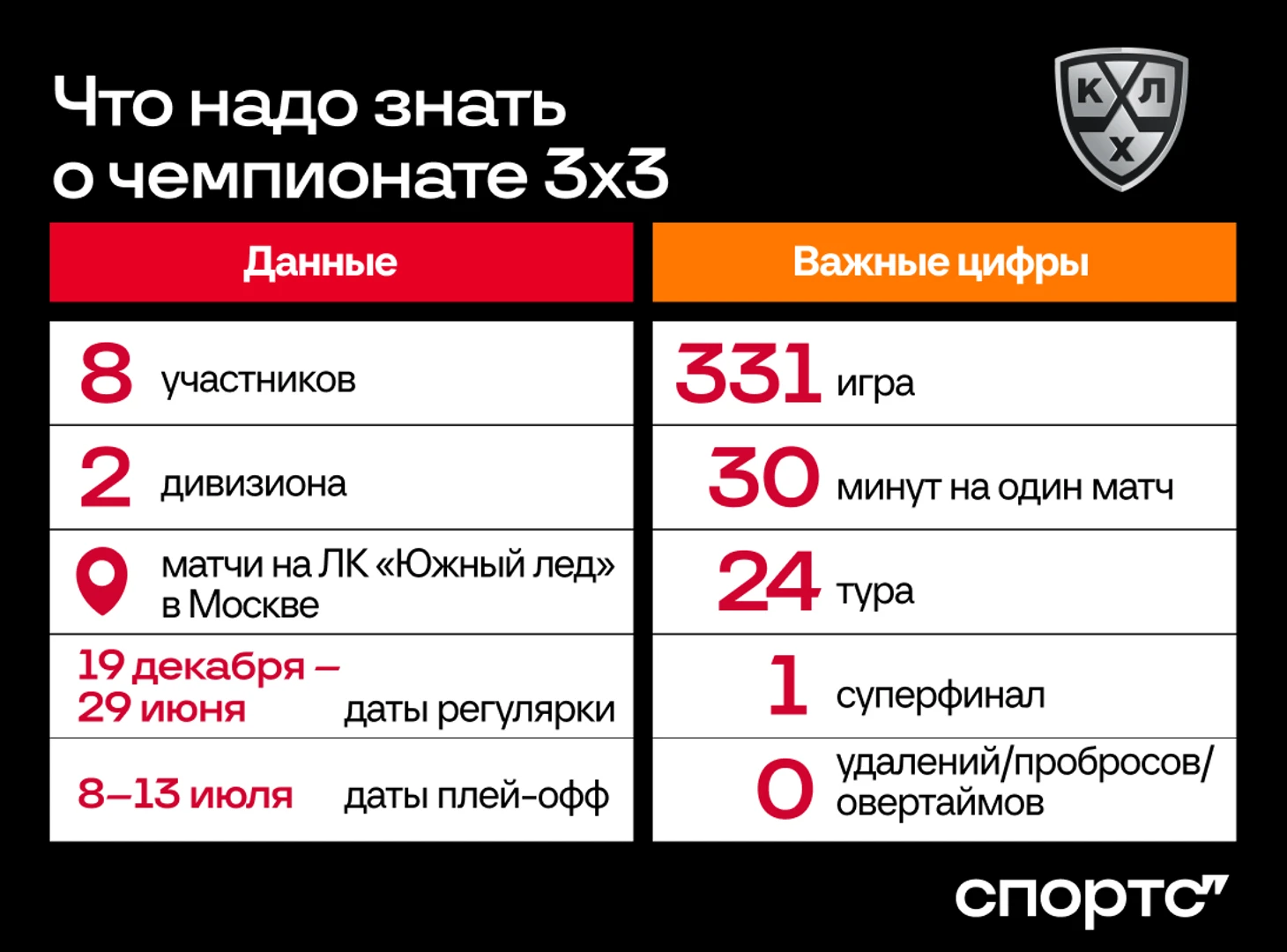 КХЛ запустила чемпионат 3х3: всего 8 команд, 331 игра, 24 млн рублей на призы
