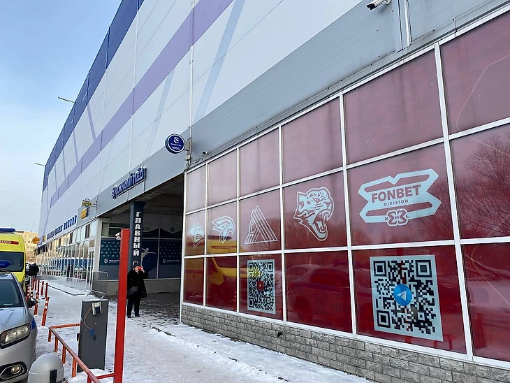 «Южный лед» имеет сразу несколько входов для разных целей. От этого попасть на ледовую арену получается не сразу – отдельный вход находится сбоку и по пути от остановки его можно не заметить. Помогают опознавательные баннеры, на которых изображены логотипы всех команд-участниц и название чемпионата.