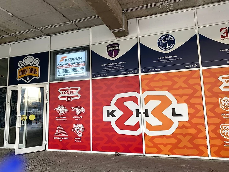 Сама арена довольно маленькая – чаще всего ее используют для тренировок или детских турниров. Издалека мало что напоминает о том, что здесь вообще проходят хоккейные матчи. В первую очередь заметны вывески фитнес-центра, магазинов и других сервисов, которые расположены прямо на стадионе.