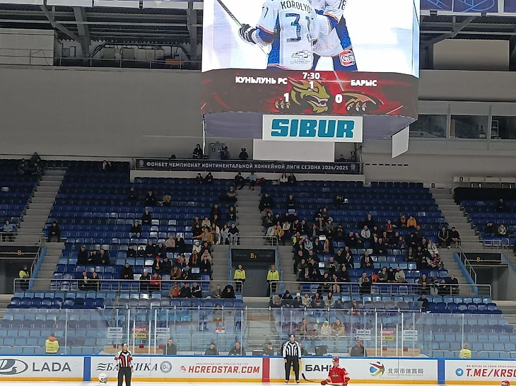 Особенно много людей собирается на московские команды. Например, на матче со «Спартаком» был первый в истории «Куньлуня» аншлаг. А на недавнем матче с «Динамо» гостевые зрители заняли весь сектор, который против «Барыса» выглядел вот так.