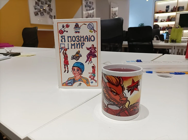 5. У «Куньлуня» нет фан-шопа, но на арене есть хоккейный магазин, где можно купить брелок (500 рублей) или шарф (1500) – а еще атрибутику других клубов (в том числе «Атланта»), коньки, шлемы и спортивное питание. А на фудкорте продаются открытки и кружки «Куньлуня». Вот я пью из нее чай в редакции.