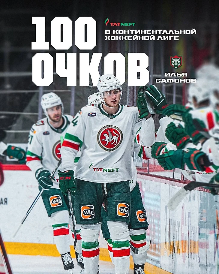 Также поздравим Илью Сафронова с юбилейной отметкой! Игрок набрал 100 очков в КХЛ.