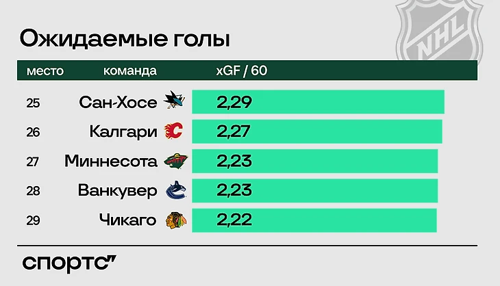 Этот объективный и жесткий барьер на пути создания моментов реально работает: «Миннесота» со старта сезона идет в лидерах и дивизиона, и конференции, и лиги, но ожидаемые голы она создает на уровне... эм, ну смотрите сами.
